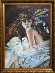 Продам авторскую картину " Она и голуби"